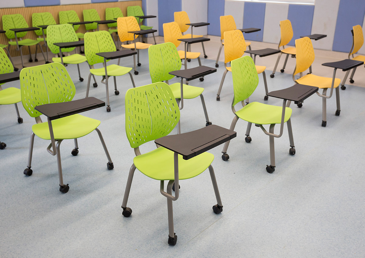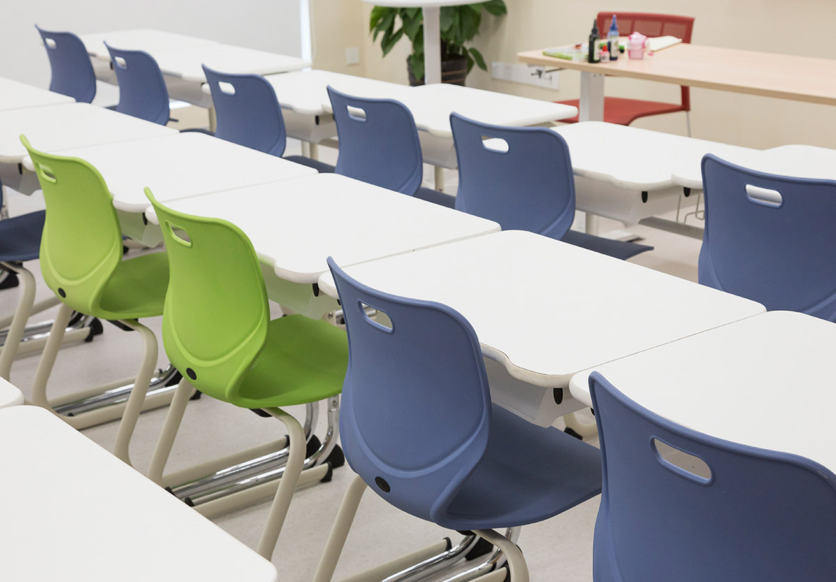 從空間上打破傳統的填鴨式刻板教學,桌椅款式及擺放可以根據教學需求自由組合,建立一個多元化的學習空間。