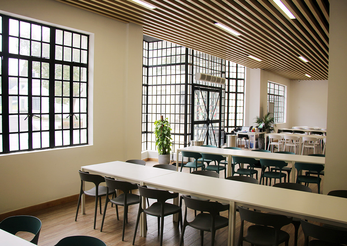坐落于上海松江佘山腳下,通過空間設計為隨時隨地發生的學習活動創造條件,非正式學習空間的巧妙布局、搞空間的利用率同時也為學習空間帶來一份巧妙的重構性五感設計:光線、色彩、燈光、音質、氣味都影響著學生們的質量。